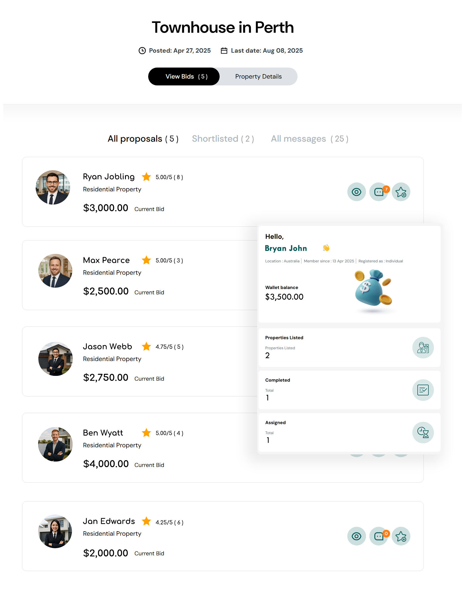 Once the bissing period has ended you can select which agent you would like to sell your property. Once you have selected an agent, you get paid and they list your place for sale.